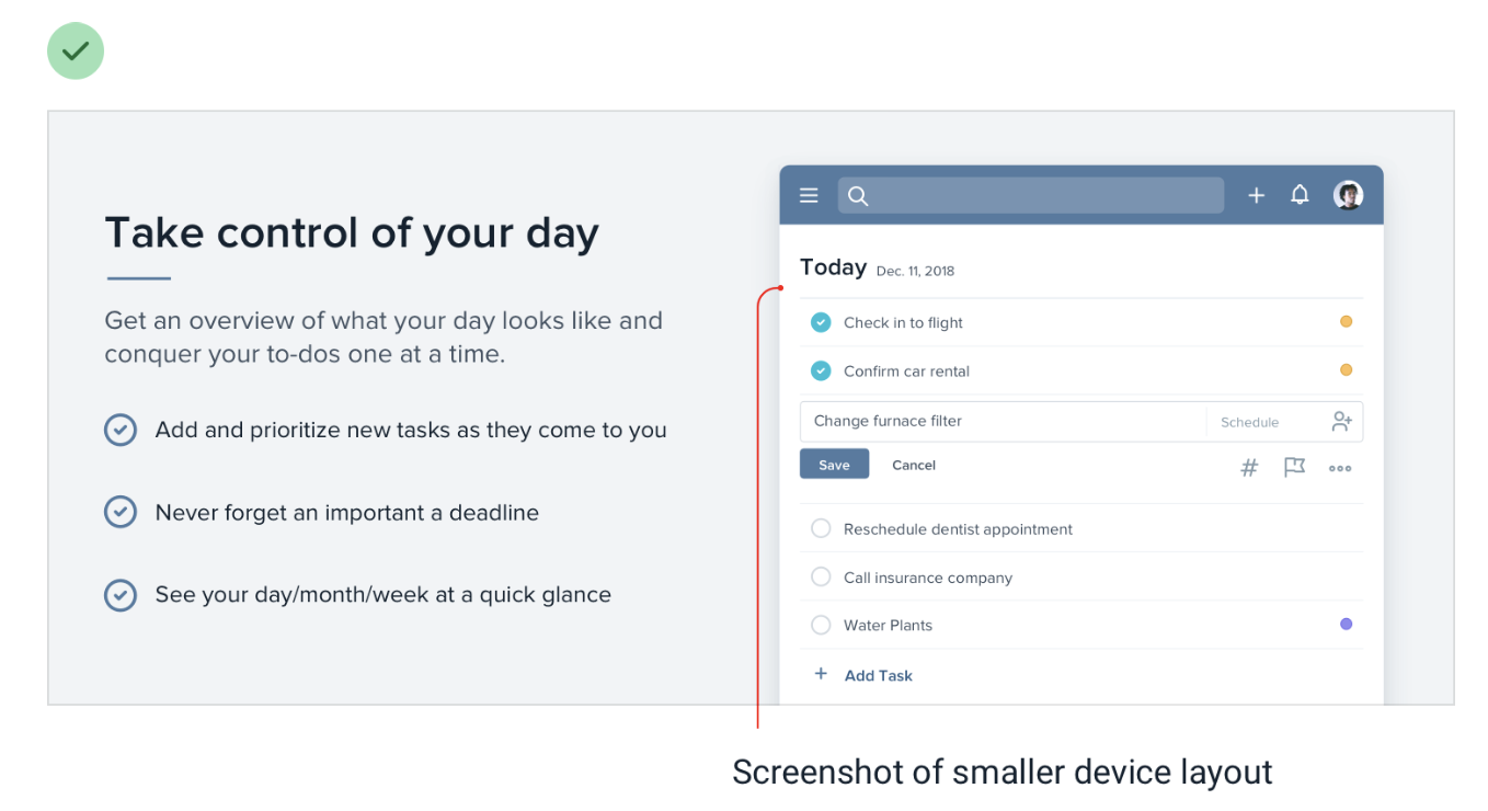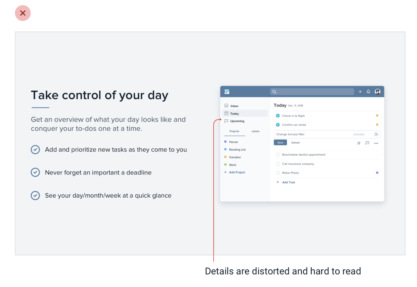 If you use screenshots to showcase your product, don’t scale them down to fit your design:
