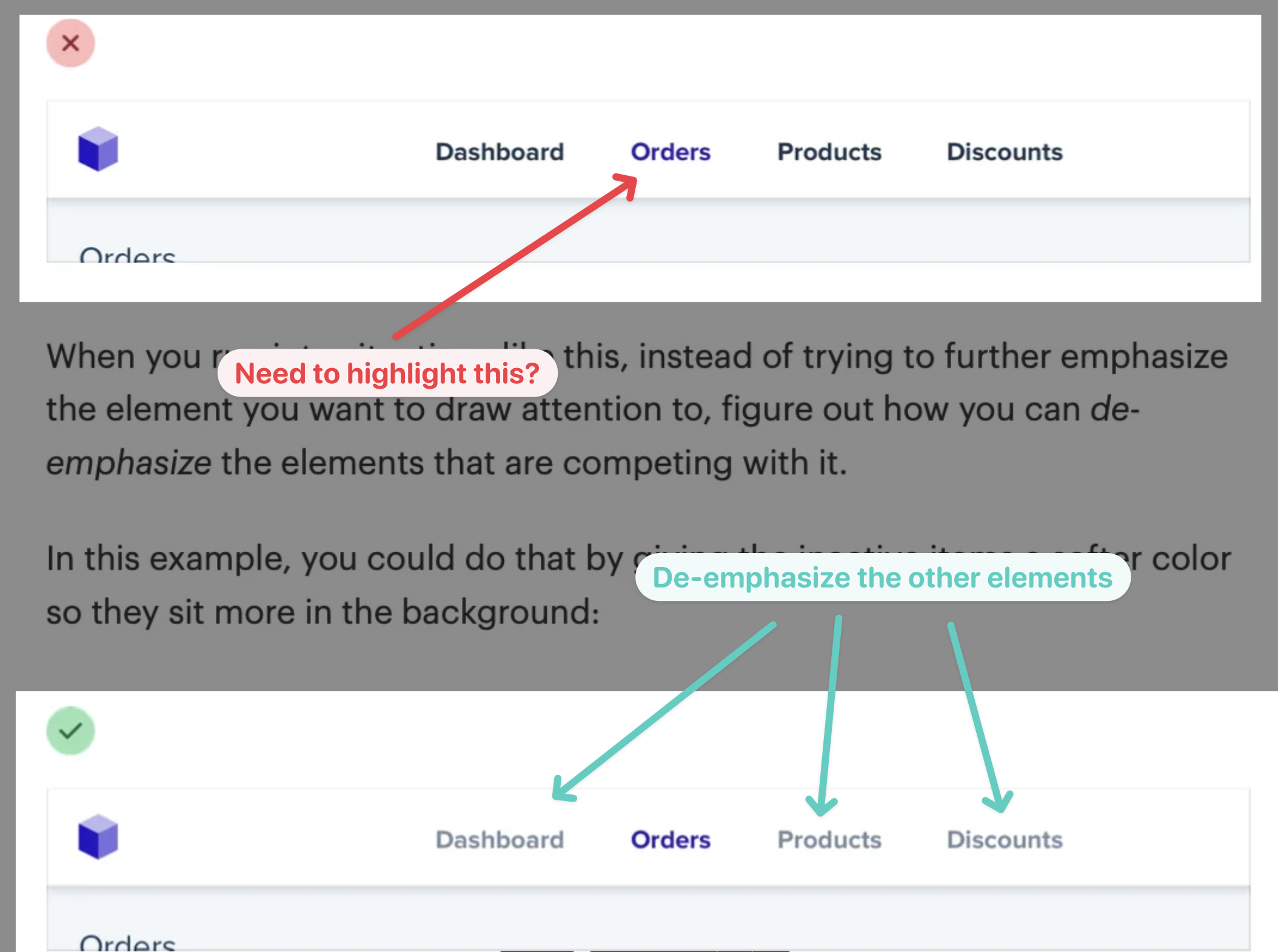 Need to highlight a selected navbar item? Don’t increase its contrast.