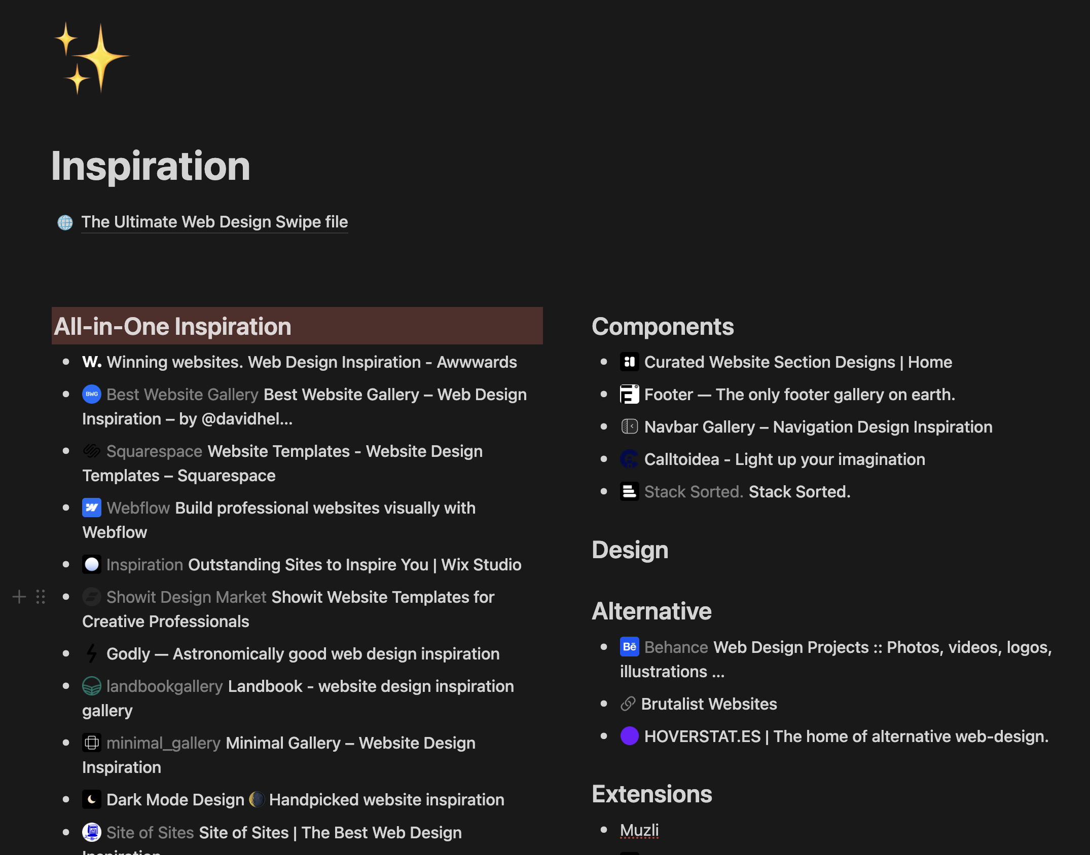 If you need a place to get good design examples from, next week I’ll share my entire Notion library for gathering inspiration