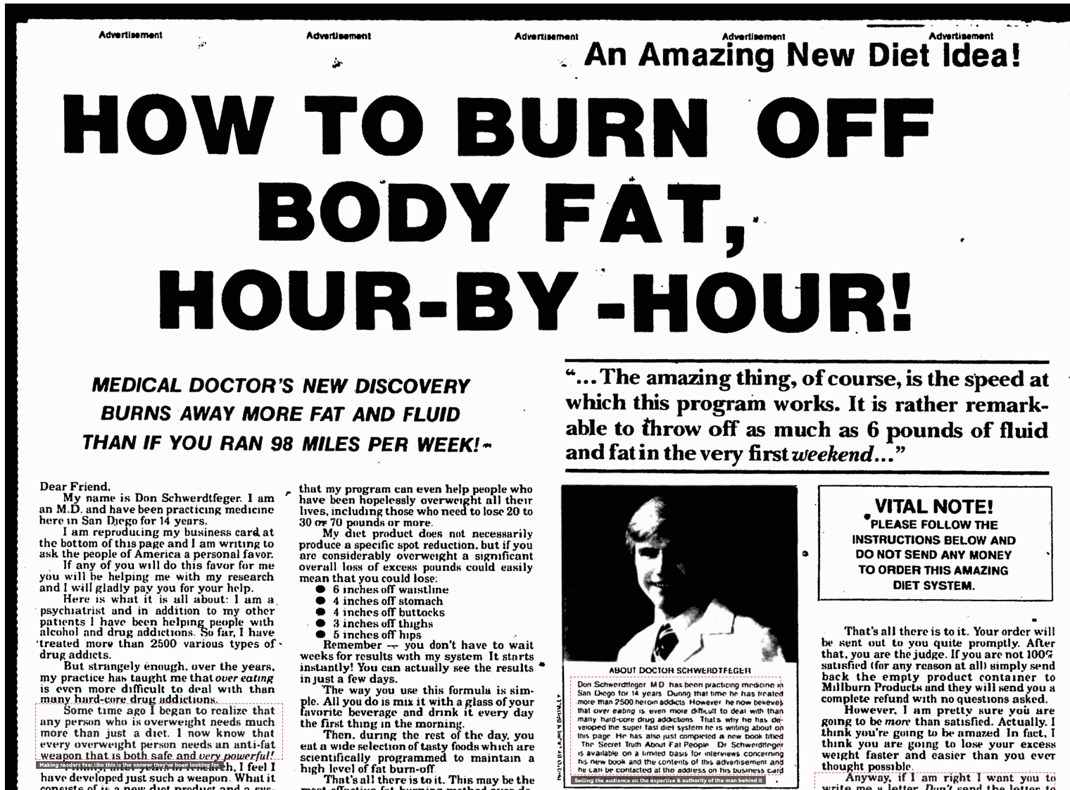 These ads were uncommon, so promising a new way to lose weight attracted readers by default.