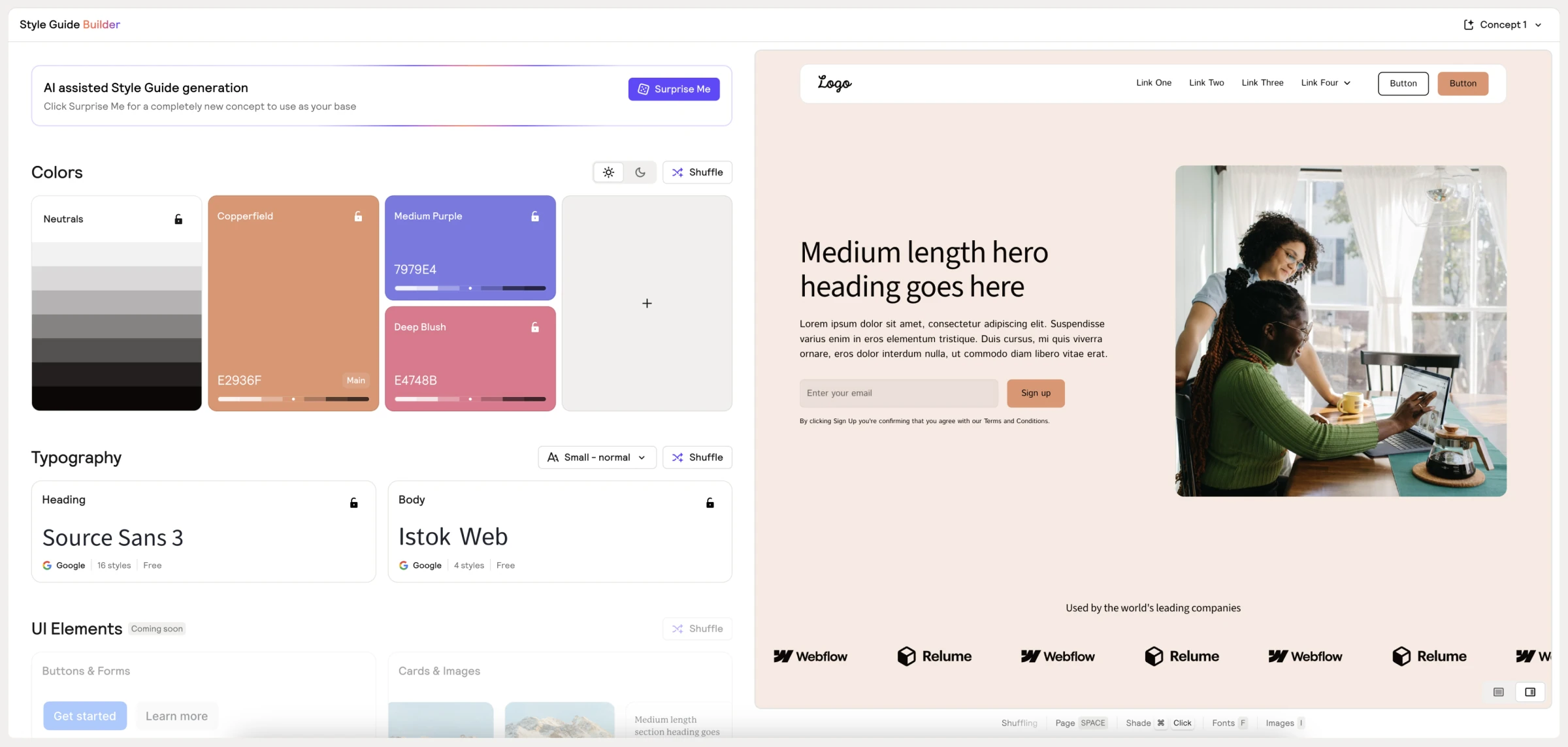 Again I use relume to quickly experiment with colors and fonts.